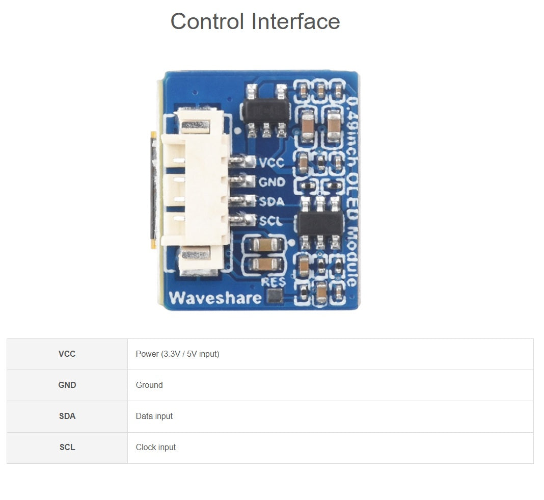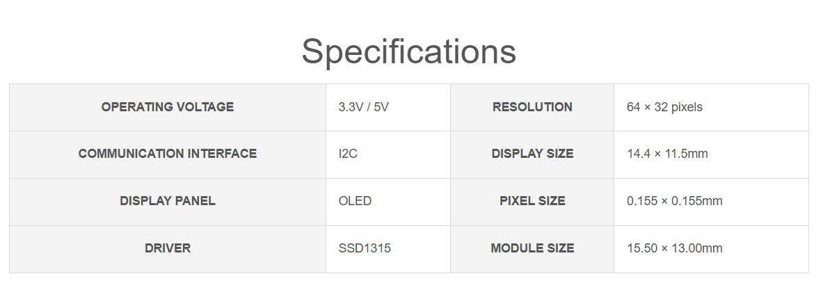 0.49inch OLED Display Module, 64×32 Resolution, I2C Communication, Black / White Display Color