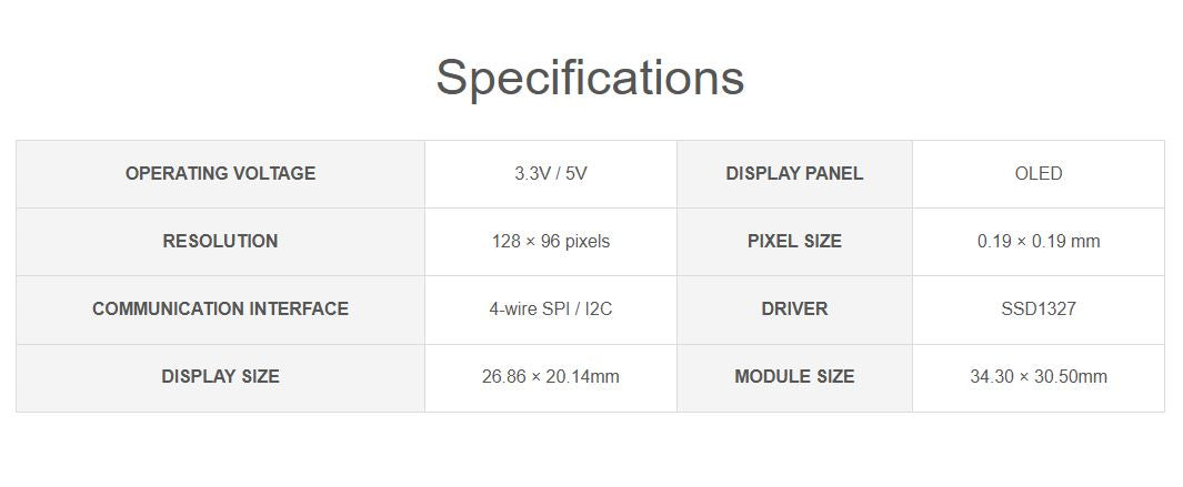 1.32inch OLED Display Module, 128×96 Resolution, 16 Gray Scale, SPI / I2C Communication