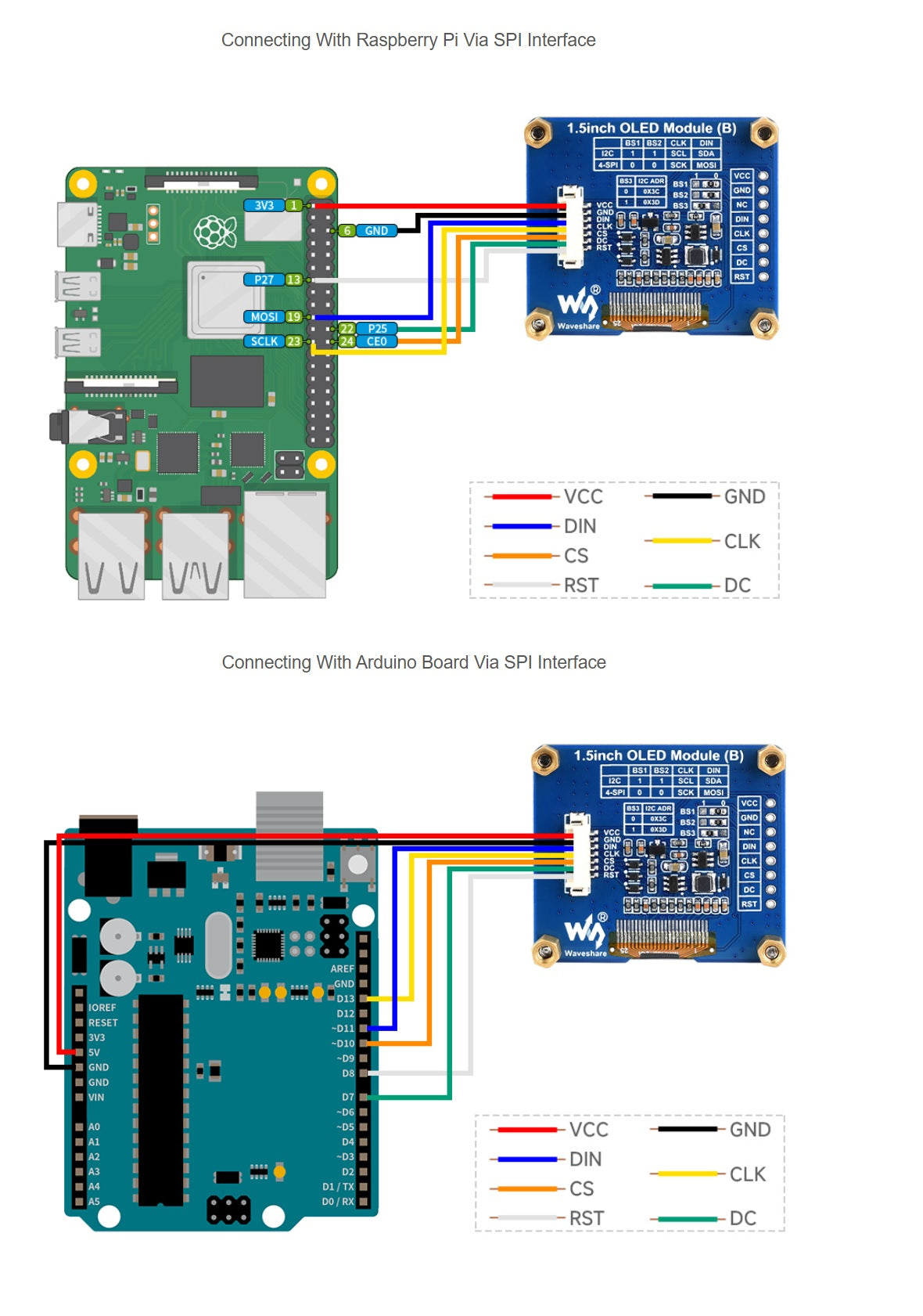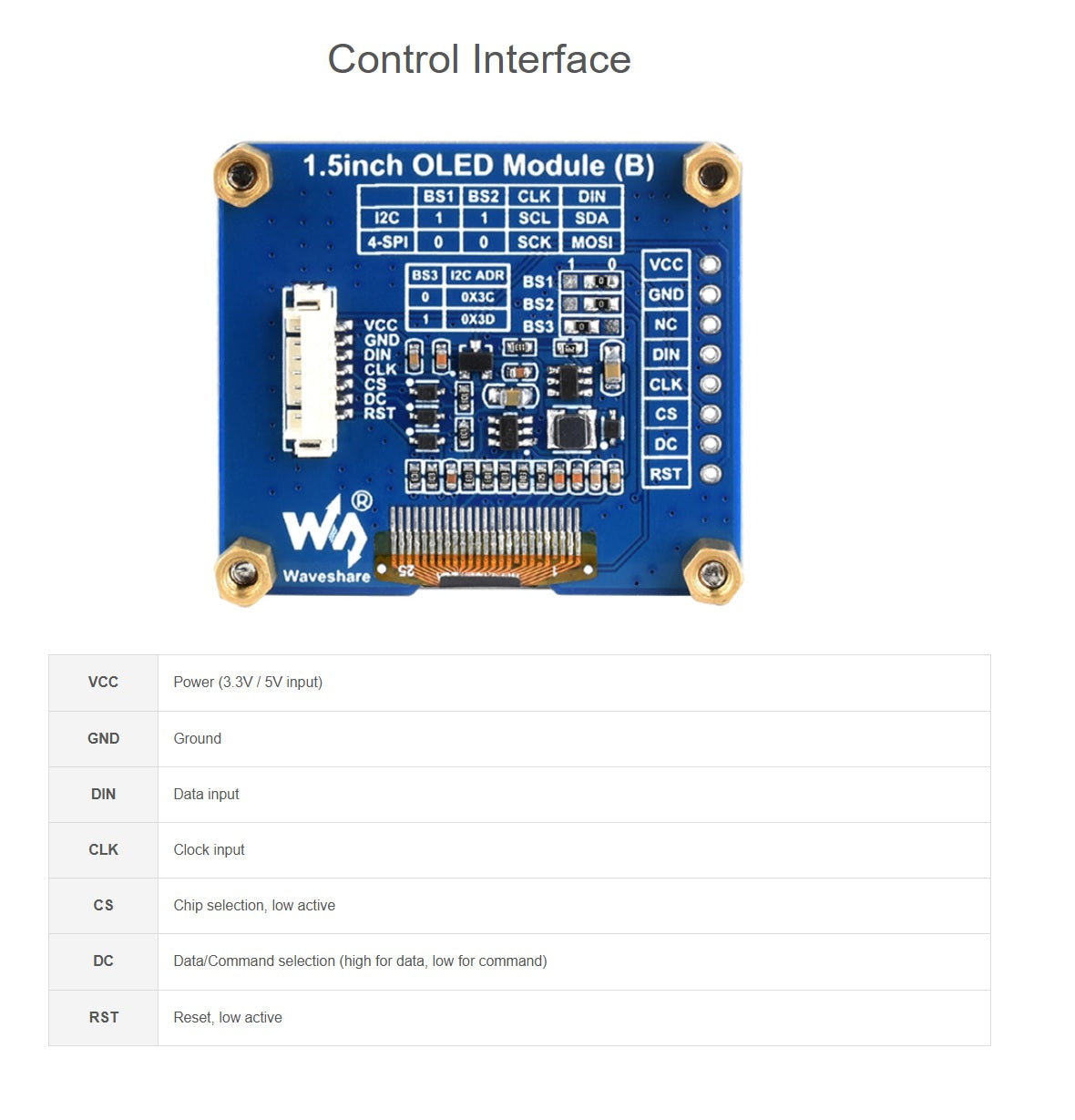 1.5inch OLED Display Module, 128×128 Resolution, SPI / I2C Communication, Black / White Display Color