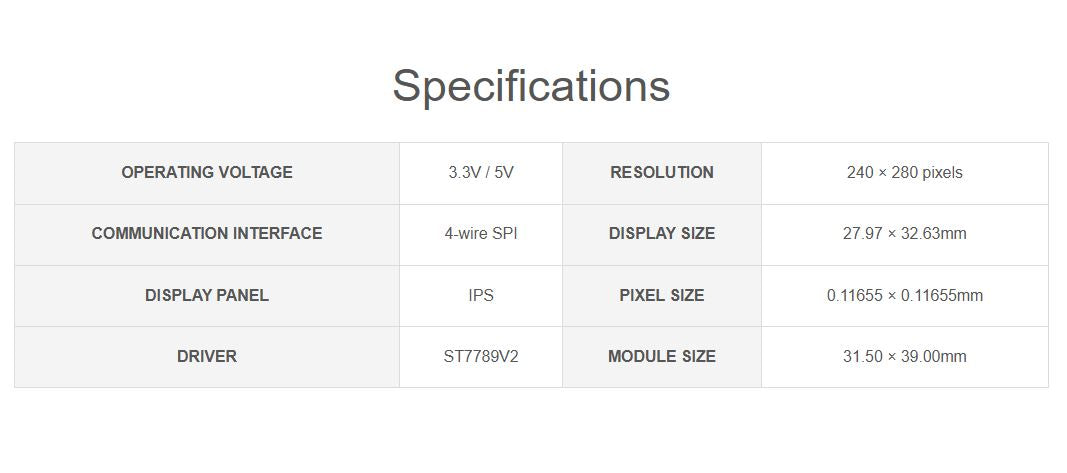 1.69inch LCD Display Module, 240×280 Resolution, SPI Interface, IPS, 262K Colors