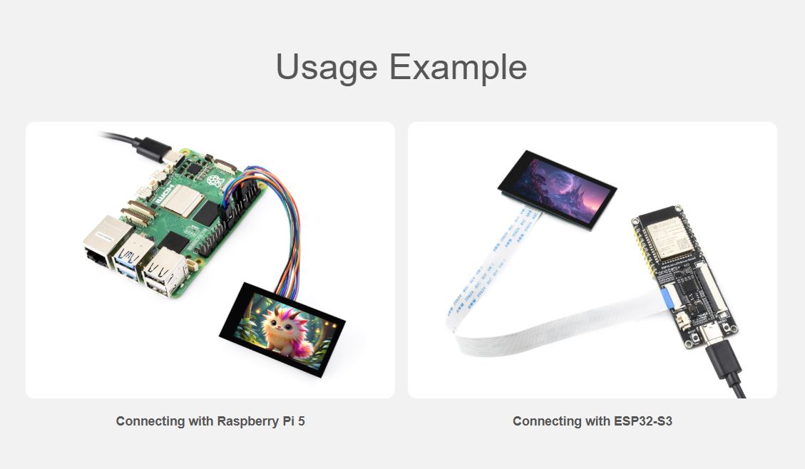 - Comes with online development resources and manual (examples for Raspberry Pi / ESP32S3 / Raspberry Pi Pico / Arduino)