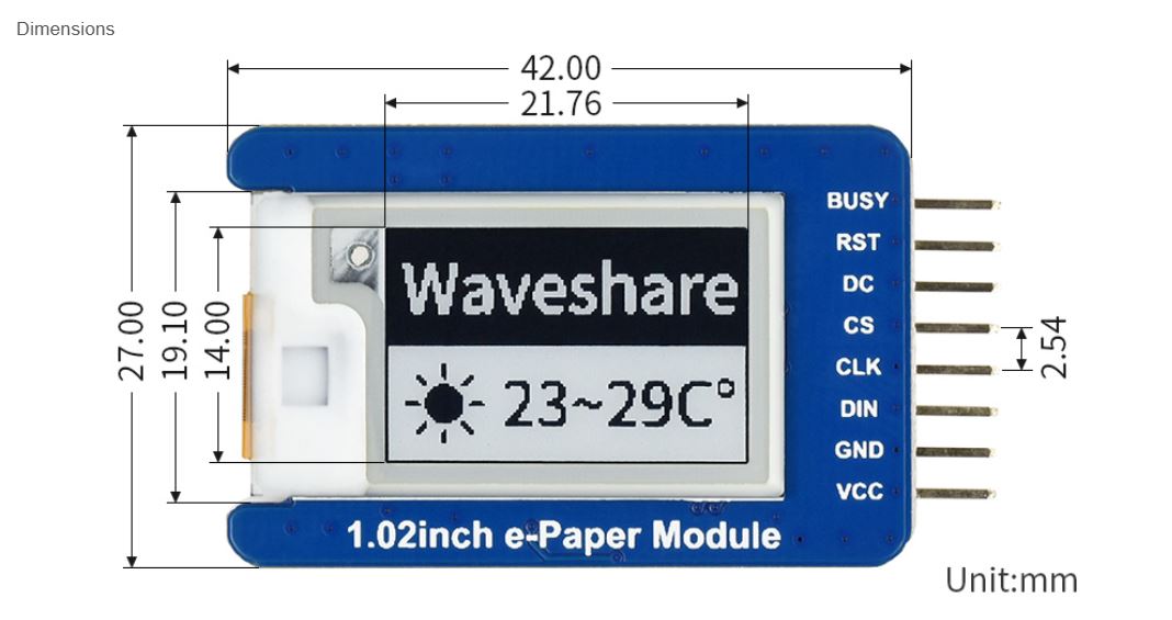 128×80, 1.02inch E-Ink display module, black/white dual-color, SPI interface