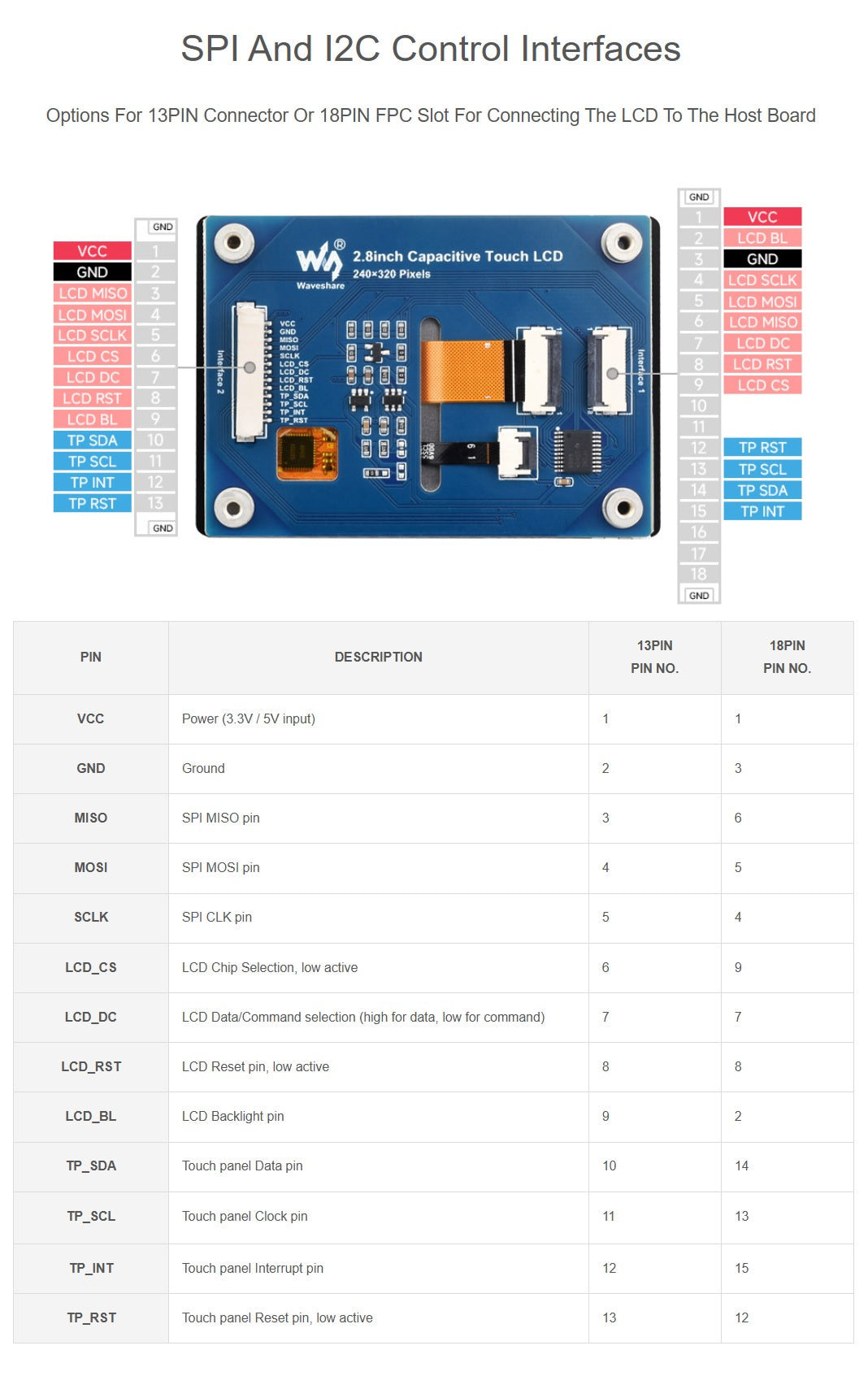 - Adapting 13PIN connector and 18PIN FPC slot for connecting the LCD module to the host board