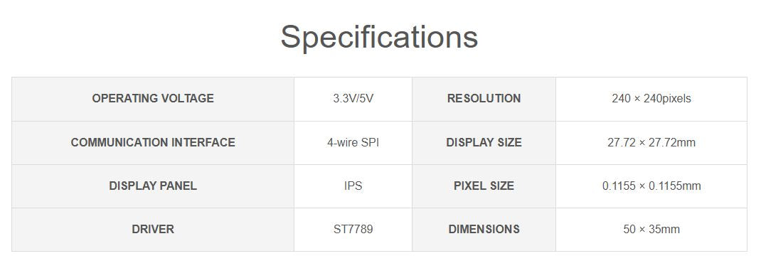 - 240×240 resolution, 65K RGB colors, clear and colorful displaying effect