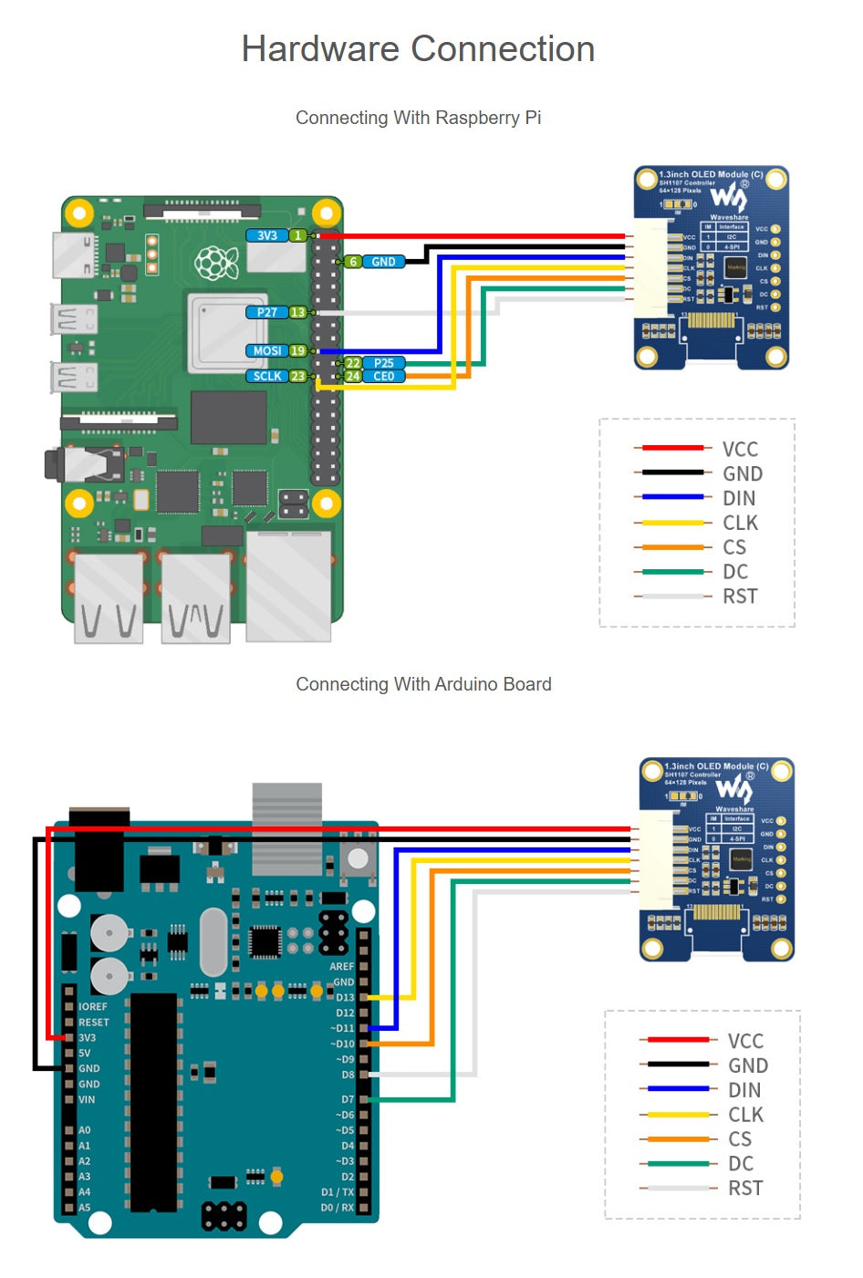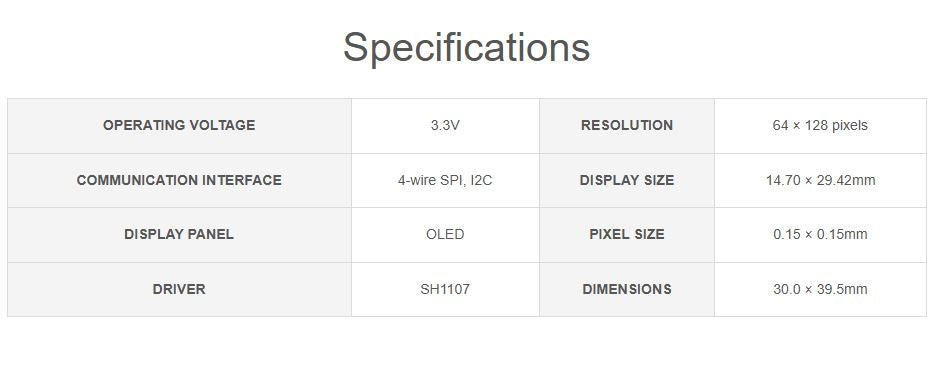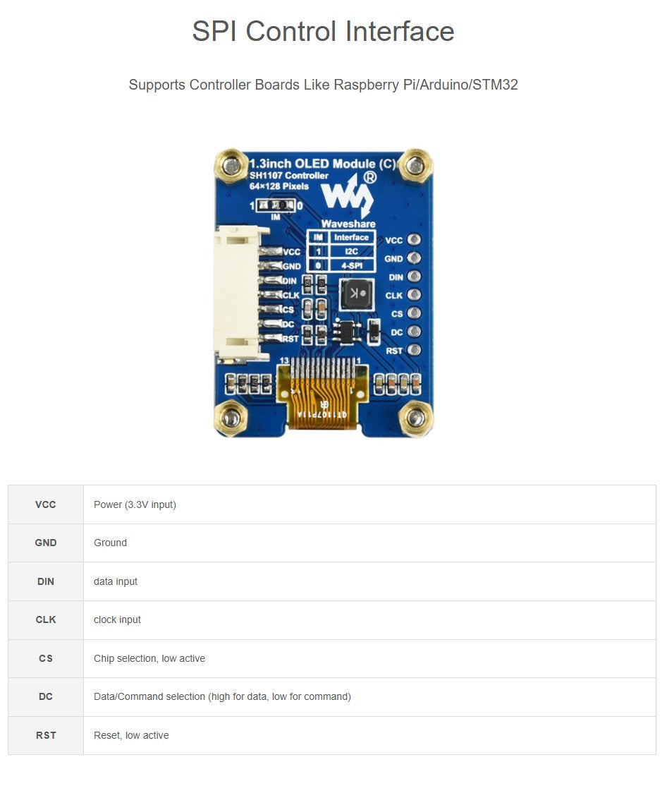 1.3inch OLED Display Module, Black / White Display Color, 64×128 Resolution, SPI / I2C Interface