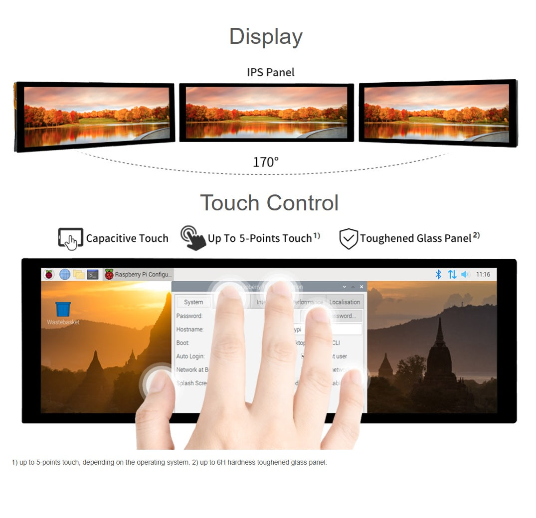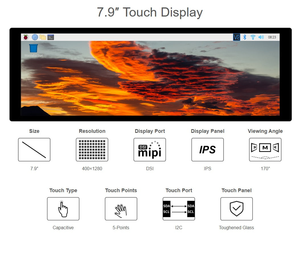 7.9inch Capacitive Touch Display for Raspberry Pi, 400×1280, IPS, DSI Interface