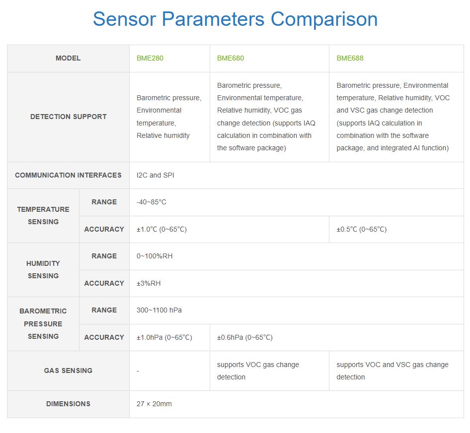 BME680 Environmental Sensor, Supports Temperature / Humidity / Barometric Pressure / Gas Detection, optional AI function