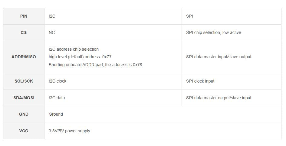 - Supports SPI communication, enabled via CS pin (I2C bus by default)