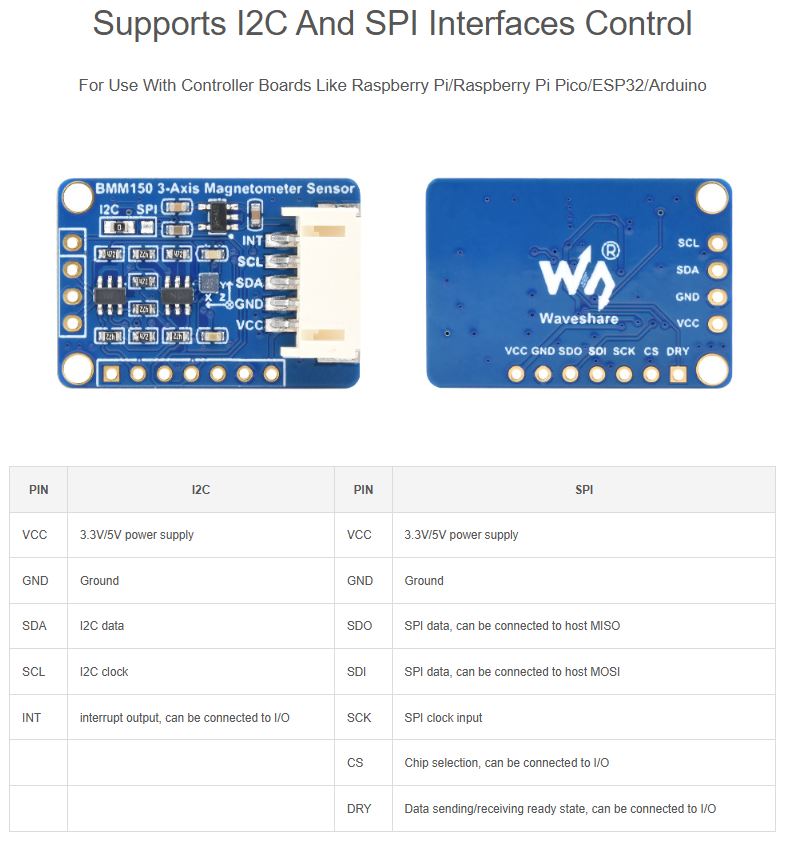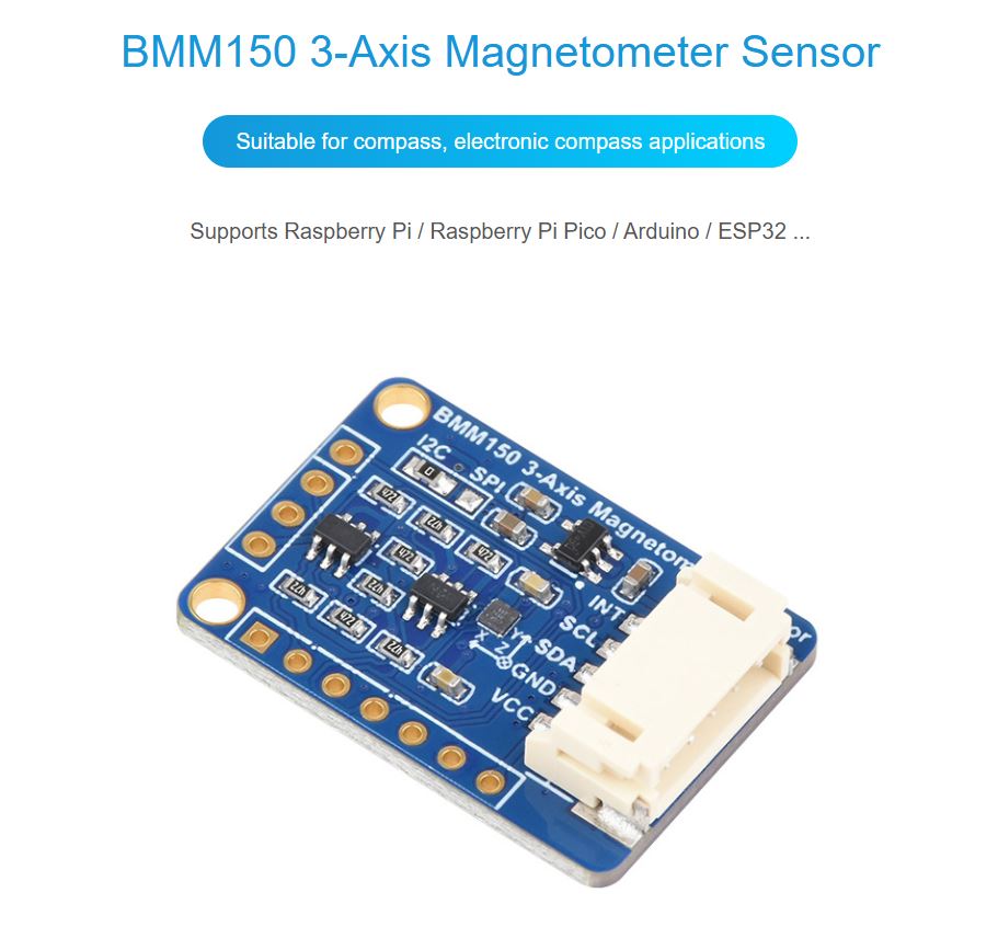 - Onboard BMM150 for measuring magnetic field in three perpendicular axes