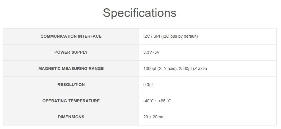 This is a digital compass sensor based on BMM150, supports magnetic field measuring in three perpendicular axes, I2C / SPI interfaces, can be used in robot navigation and positioning, electronic compass, magnetic heading devices, etc.