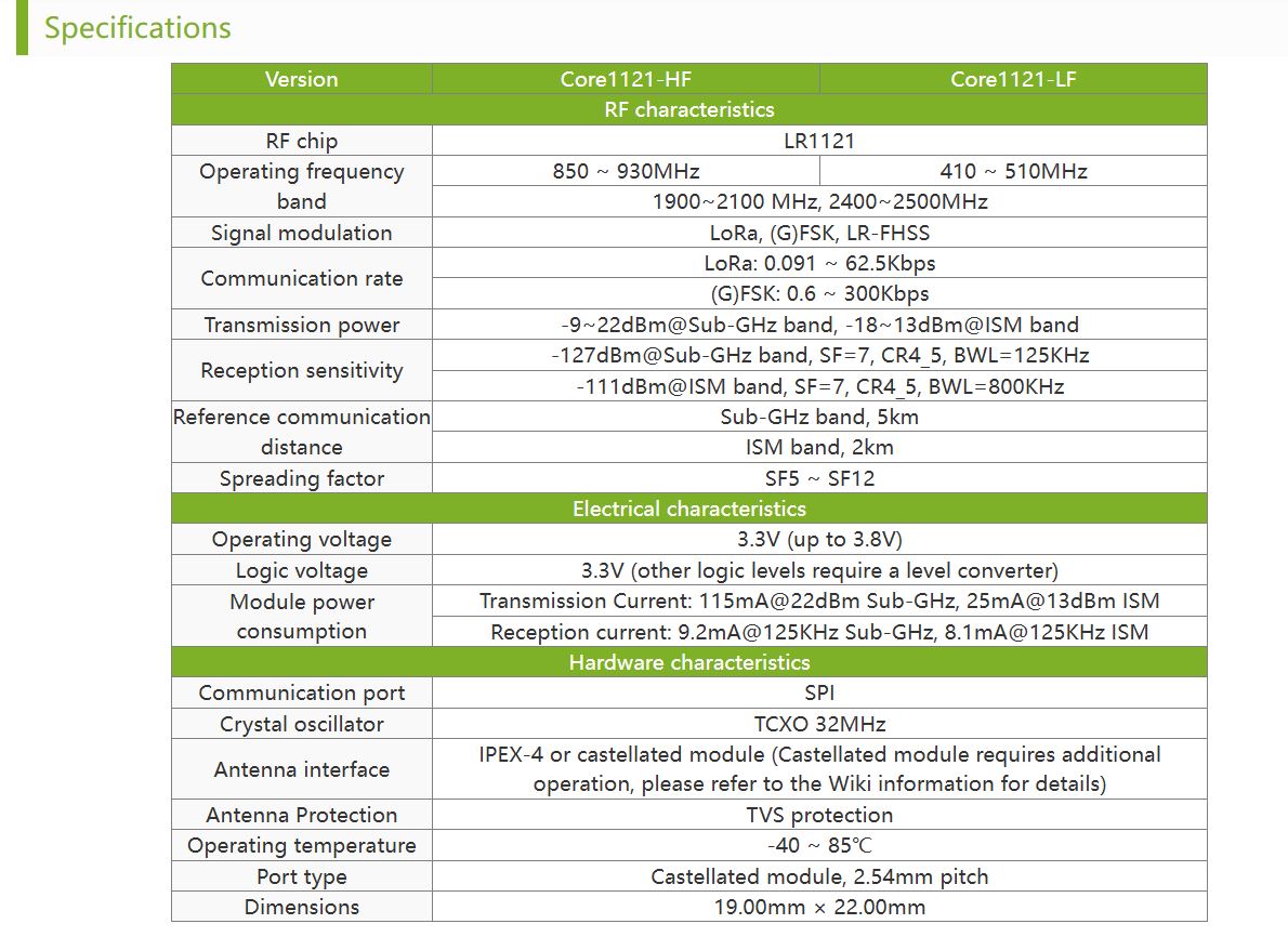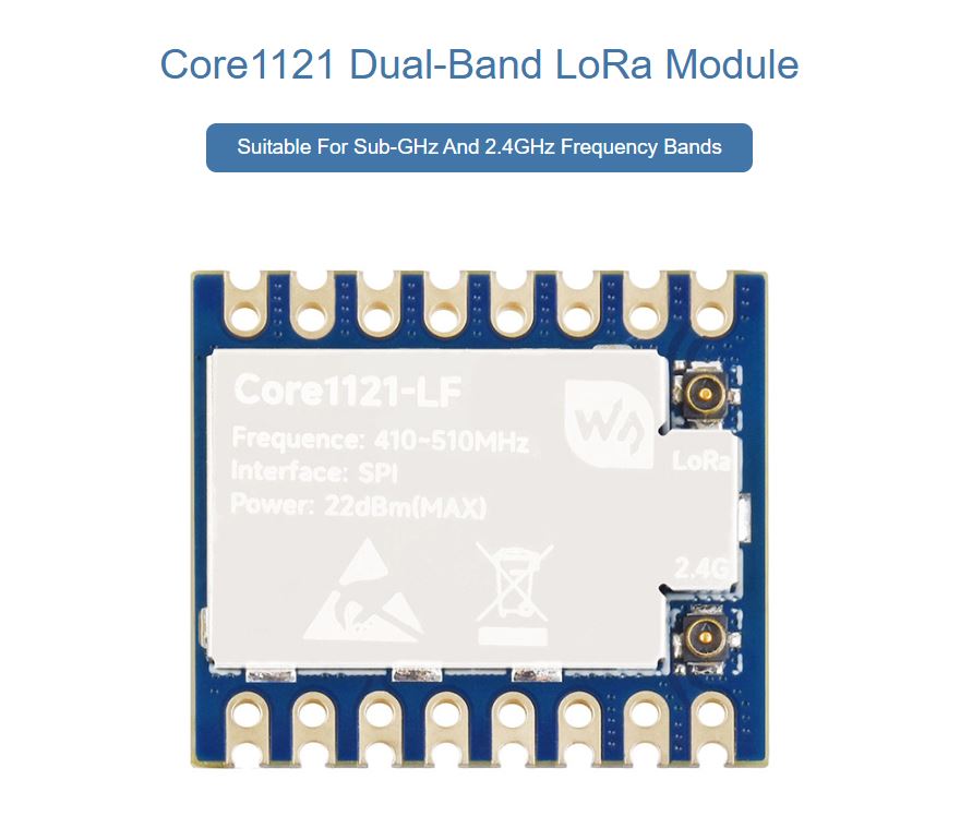 Core1121 LF/HF Dual-Band LoRa Module, Based on Low-Power LR1121 Transceiver, Suitable For Sub-GHz And 2.4GHz Frequency Bands