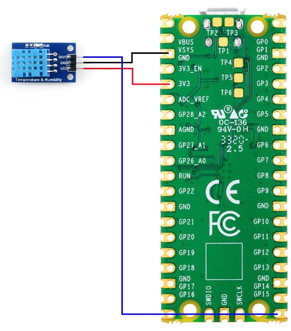 This is a calibrated digital temperature and humidity module with onboard sensor DHT11. It can be used for detecting ambient temperature and humidity, through the standard single-wire interface.