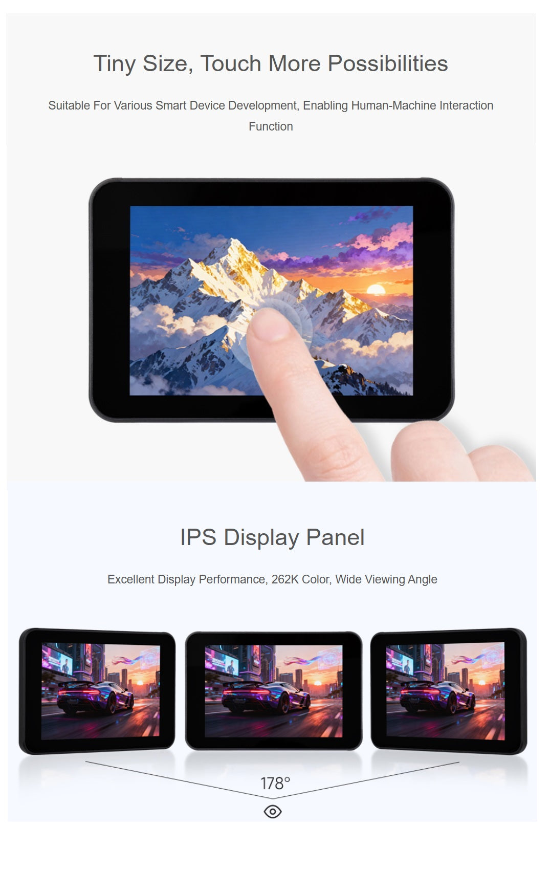 - Onboard 3.5inch capacitive touch IPS display for clear color picture display, 320 × 480 resolution, 262K color