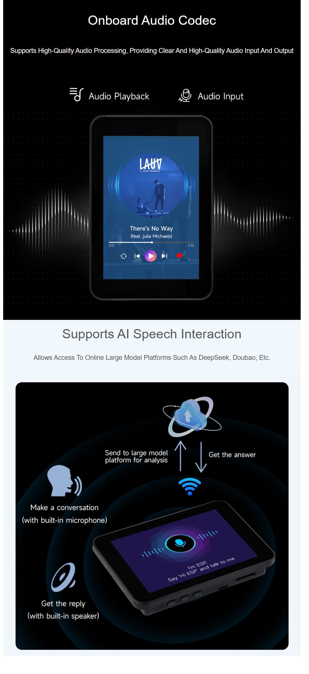 - Onboard TF card slot for extended storage and fast data transfer, suitable for applications such as data recording and media playback, simplifying circuit design