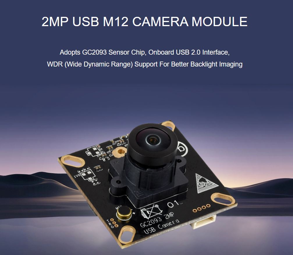 GC2093 2MP USB Camera Module, Wide Dynamic Backlight Imaging, Fixed-Focus, Onboard Microphone