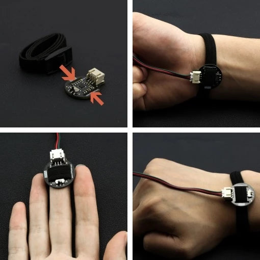 The DFRobot heart rate sensor is a thumb-sized heart rate monitor designed for Arduino microcontrollers. This heart rate monitor sensor is a pulse sensor which is developed based on PPG techniques. This is a simple and low-cost optical technique that can be used to detect blood volume changing in the microvascular bed of tissues. It is relatively easy to detect the pulsatile component of the cardiac cycle according to this theory.