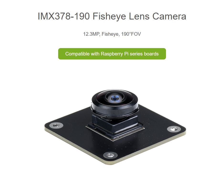 IMX378 Fisheye Lens Camera for Raspberry Pi, 12.3MP, Wider Field Of View. Direct connect to Raspberry Pi different variants including 4B/3B+/3A+/3B/2B/B+/A+, extra FPC cable is required for Raspberry Pi 5 / CM4 IO Board / Zero series.