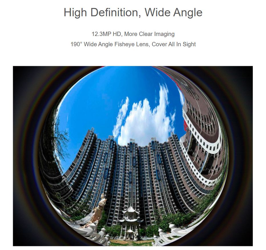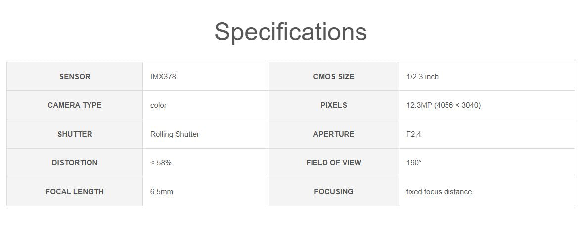 IMX378 12.3MP camera, 190°FOV, F2.4 aperture, 6.5mm focal length, fisheye Lens , Wider Field Of View