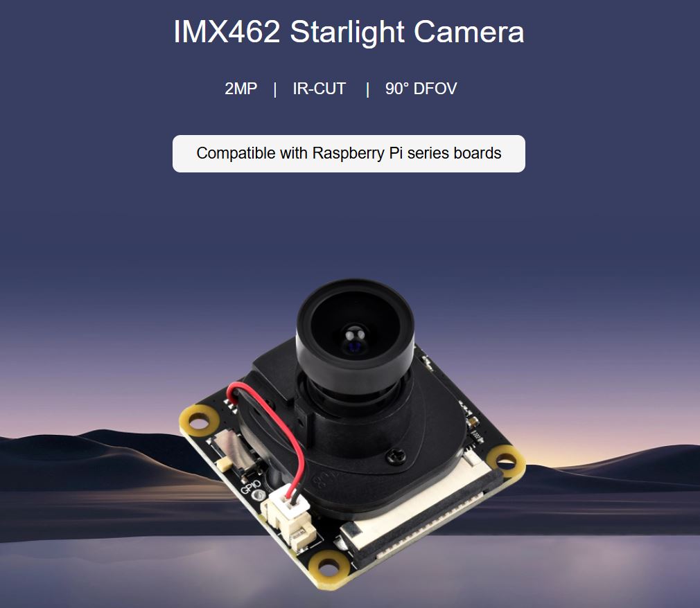 IMX462 2MP IR-CUT Camera, 90° DFOV, Starlight Camera Sensor, Fixed-Focus, Compatible with Raspberry Pi series boards