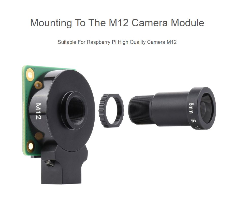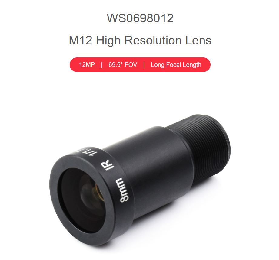 M12 High Resolution Lens, 12MP, 69.5° FOV, 8mm Focal length, Compatible with Raspberry Pi High Quality Camera M12