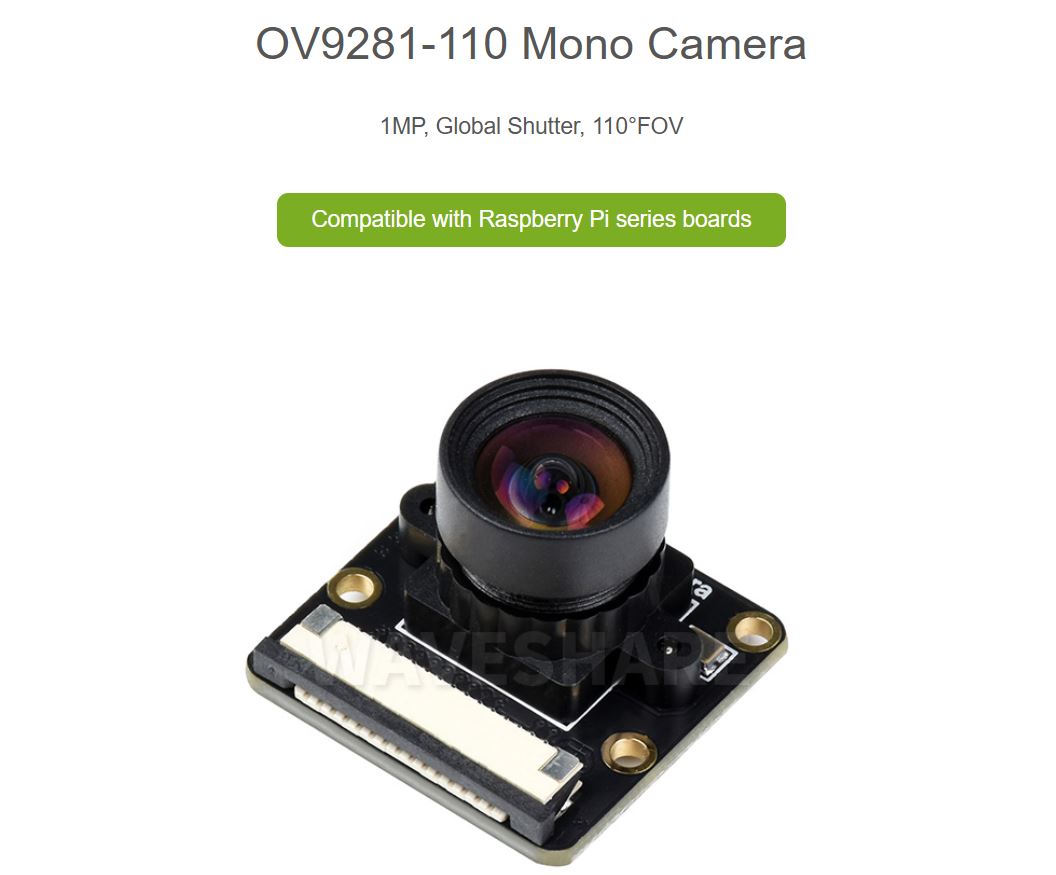 OV9281-110 mono Camera for Raspberry Pi, Global Shutter, 1MP