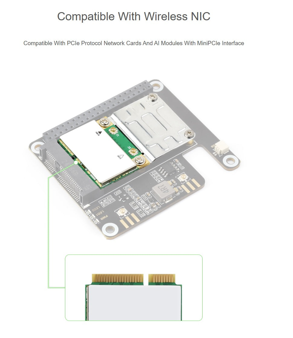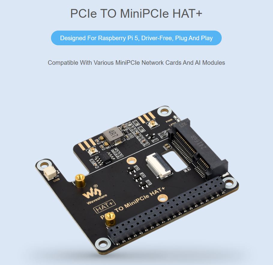 PCIe TO MiniPCIe Adapter For Raspberry Pi 5, Compatible With MiniPCIe Wireless NIC, Supports USB Bluetooth Connection, Driver-Free, Plug And Play, High-Speed Networking