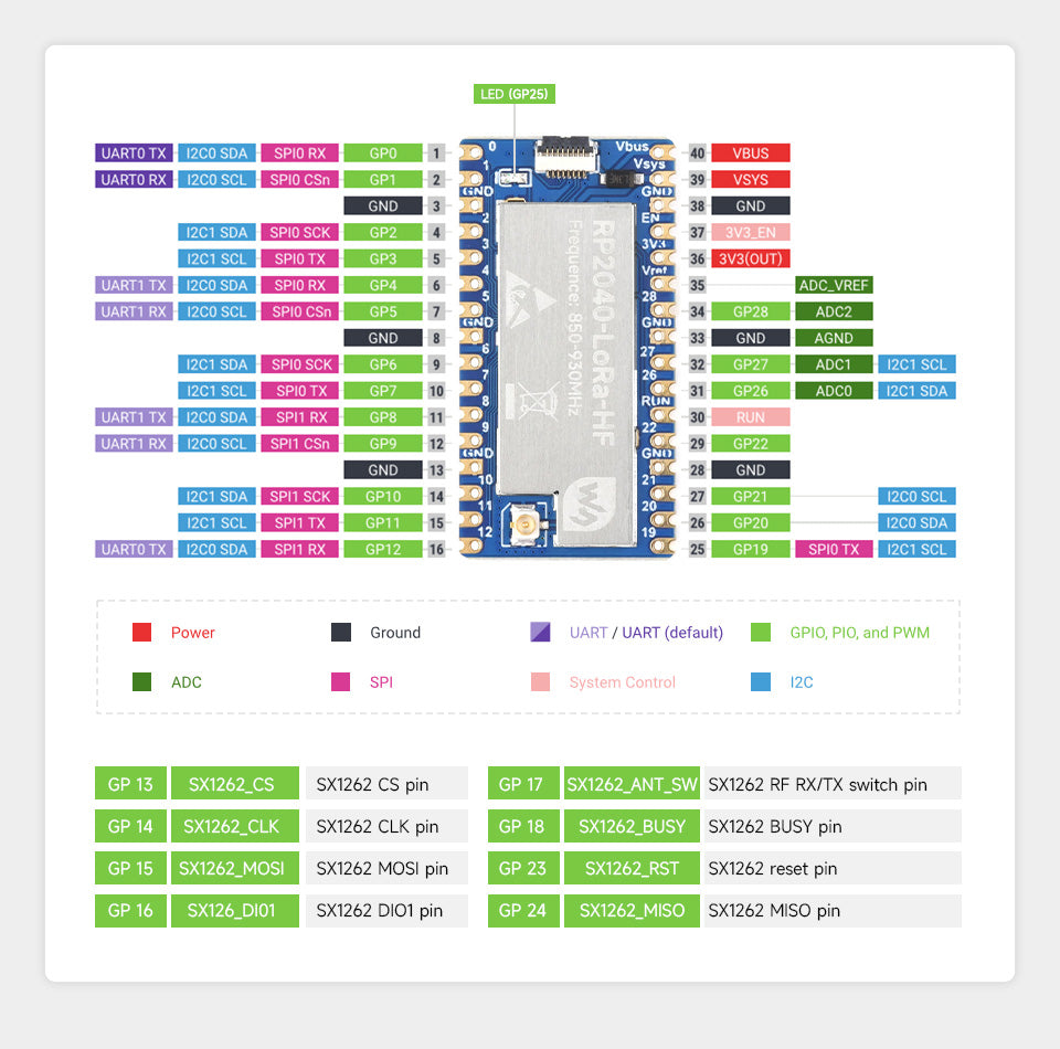RP2040-LoRa Development Board, Integrates SX1262 RF Chip, Long-Range Communication
