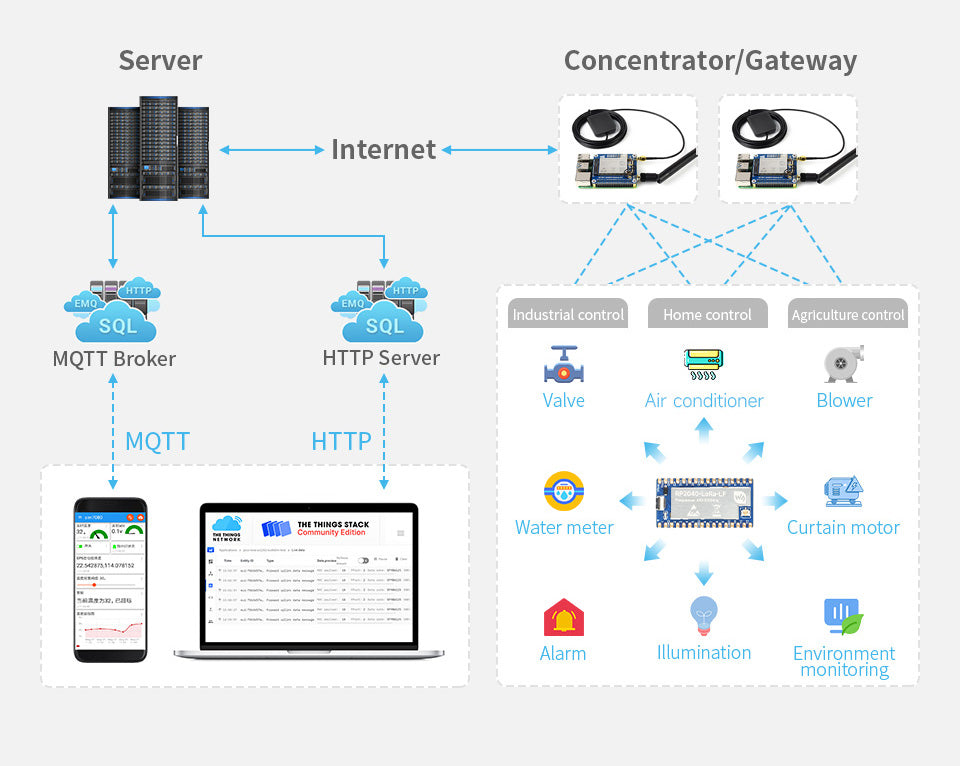 RP2040-LoRa is a LoRa development board using the new generation of SX1262 RF chip, which provides better performance than the SX127X series in power consumption, communication distance, and power efficiency. Adopts LoRa modulation technology to solve the problem in the traditional design solutions which can not balance distance, anti-interference, and power consumption at the same time. Combines with LoRa gateway for connecting Cloud Server such as TTN and ChirpStack for quick verification. Optional for LF/HF frequency band.