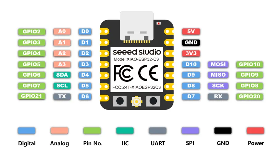 Seeed Studio XIAO ESP32-C3 adopts new RISC-V architecture, supporting bothWi-Fi and BLE wireless connectivities. For Internet of Things applications, you will find it is flexible and suitable for all kinds of IoT scenarios.