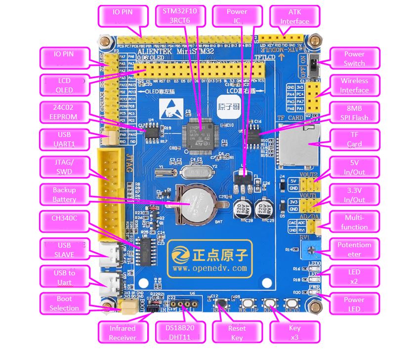 - Function Buttons: KEY0, KEY1, KEY_UP (with wake-up function) ×3